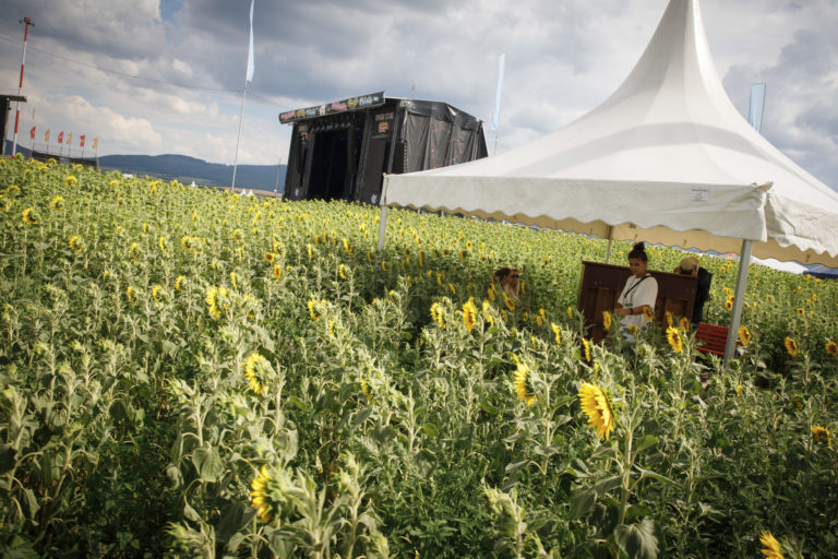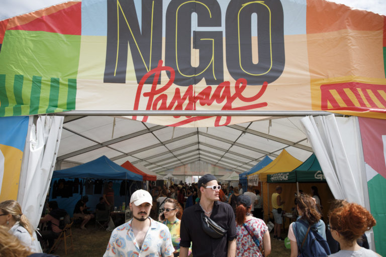 Návštenvíčka v NGO stane pre prezentáciu neziskových organizácií, nadácií a občianskych združení počas druhého dňa 25. ročníka multižánrového festivalu Pohoda 2022 na letisku v Trenčíne. Trenčín, 8. júl 2022. Foto: SITA/Branislav Bibel