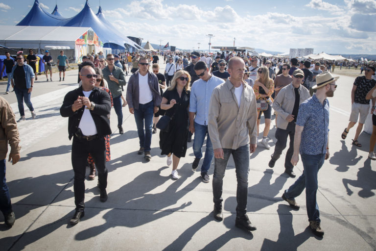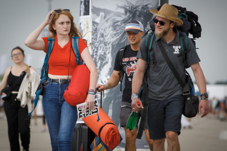 Účastníci počas príchodu v rámci prvého dňa 25. ročníka multižánrového festivalu Pohoda 2022 na letisku v Trenčíne. Trenčín, 7. júl 2022. Foto: SITA/Branislav Bibel
