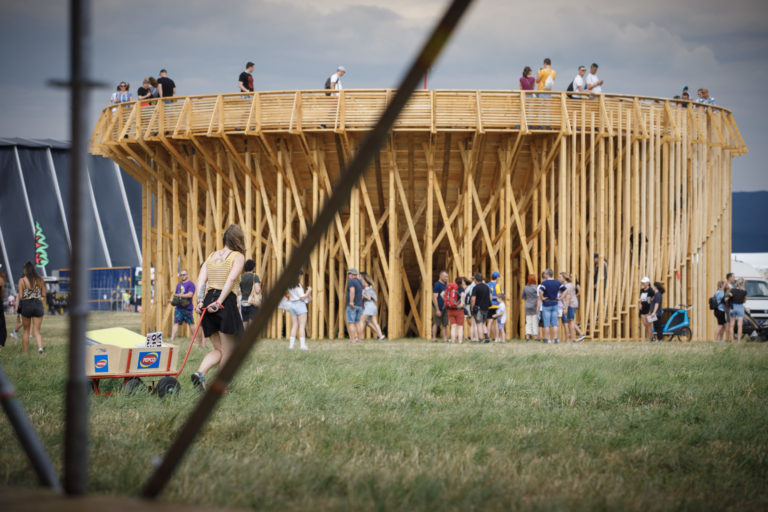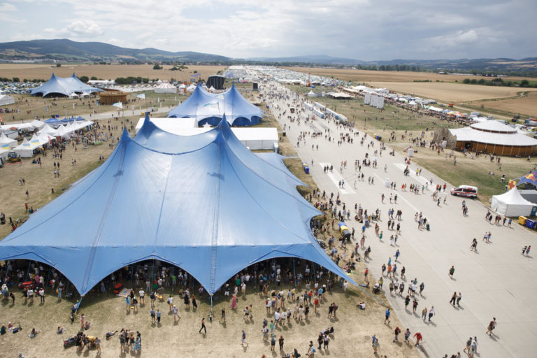 Pódium Sphéra/Eset (Open) Space počas prvého dňa 25. ročníka multižánrového festivalu Pohoda 2022 na letisku v Trenčíne. Trenčín, 7. júl 2022. Foto: SITA/Branislav Bibel