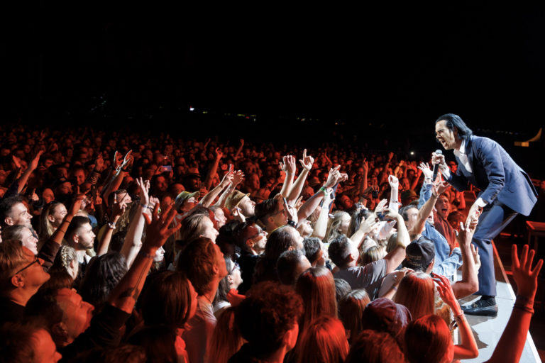 Spevák Nick Cave z austrálskej rockovej skupiny Nick Cave & The Bad Seeds počas vystúpenia na 25. ročníku multižánrového festivalu Pohoda 2022 na letisku v Trenčíne. Trenčín, 7. júl 2022. Foto: SITA/Branislav Bibel
