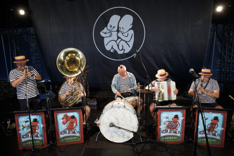 Slovenská hudobná skupina Funny Fellows počas vystúpenia v rámci druhého dňa 25. ročníka multižánrového festivalu Pohoda 2022 na letisku v Trenčíne. Trenčín, 8. júl 2022. Foto: SITA/Branislav Bibel