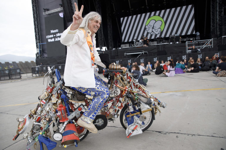 Výtvarník Peter Kalmus počas druhého dňa 25. ročníka multižánrového festivalu Pohoda 2022 na letisku v Trenčíne. Trenčín, 8. júl 2022. Foto: SITA/Branislav Bibel