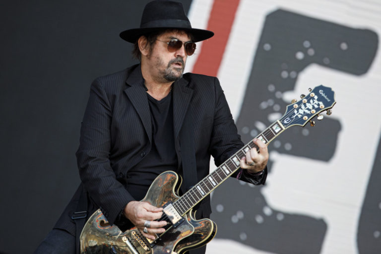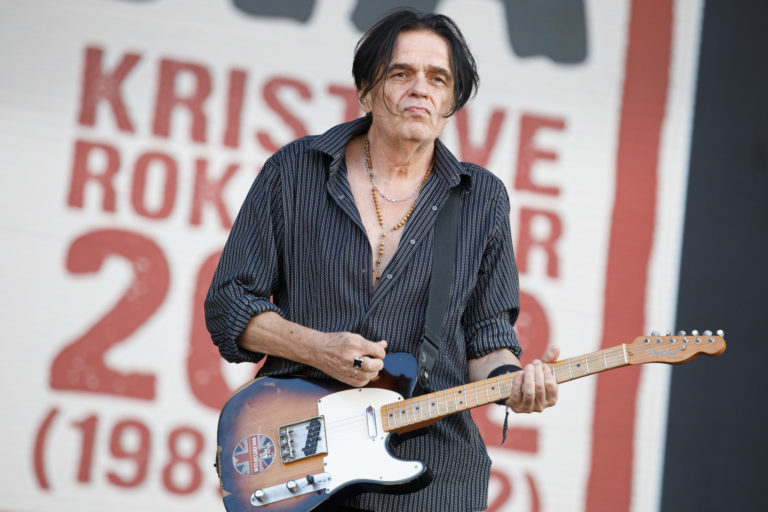 Gitarista Svetozár Korbeľ alias Sveťo počas koncertu slovenskej punk-rockovej kapely Slobodná Európa na 25. ročníku multižánrového festivalu Pohoda 2022 na letisku v Trenčíne. Trenčín, 8. júl 2022. Foto: SITA/Branislav Bibel