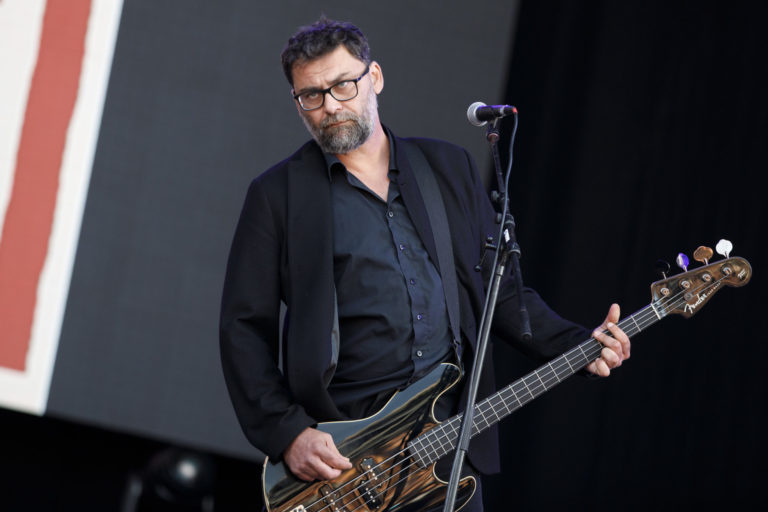 Basgitarista Rasťo Gore počas koncertu slovenskej punk-rockovej kapely Slobodná Európa na 25. ročníku multižánrového festivalu Pohoda 2022 na letisku v Trenčíne. Trenčín, 8. júl 2022. Foto: SITA/Branislav Bibel