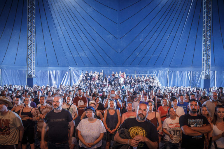 Publikum v EUrópa stage počas diskusie s prezidentkou SR na tému: Tri roky s prezidentkou SR v rámci tretieho dňa 25. ročníka multižánrového festivalu Pohoda 2022 na letisku v Trenčíne. Trenčín, 9. júl 2022. Foto: SITA/Branislav Bibel