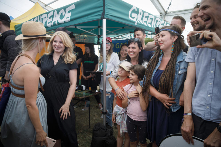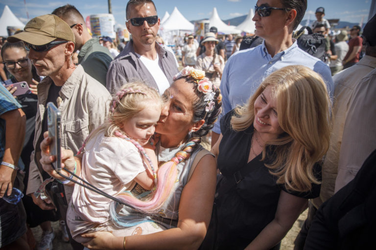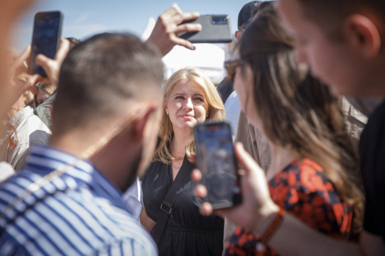 Prezidentka SR Zuzana Čaputová počas 25. ročníka multižánrového festivalu Pohoda 2022 na letisku v Trenčíne. Trenčín, 9. júl 2022. Foto: SITA/Branislav Bibel