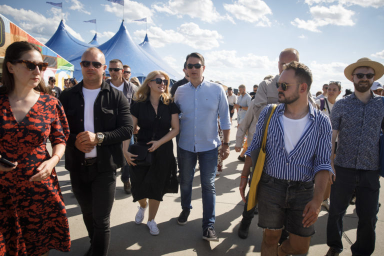 Prezidentka SR Zuzana Čaputová (druhá zľava) počas 25. ročníka multižánrového festivalu Pohoda 2022 na letisku v Trenčíne. Trenčín, 9. júl 2022. Foto: SITA/Branislav Bibel