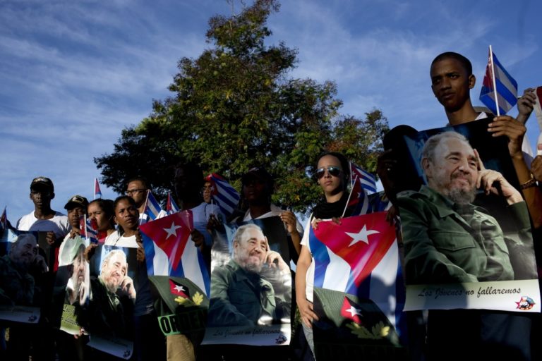 Tisíce ľudí zhromaždených popri ceste k cintorínu spievali národnú hymnu a volali Viva Fidel!. Santiago de Cuba, 4. novembra 2016. Foto: SITA/AP