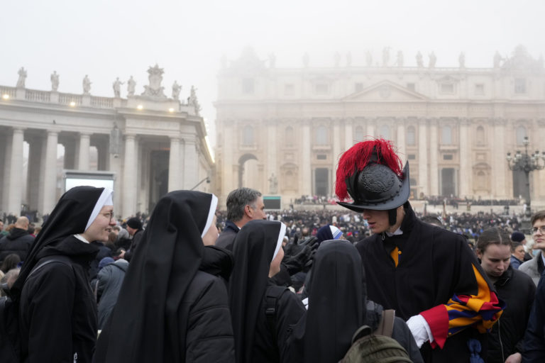 Členovia cirkvi čakajú na zádušnú omšu za zosnulého emeritného pápeža Benedikta XVI. na Námestí sv. Petra vo Vatikáne vo štvrtok. Benedikt zomrel vo veku 95 rokov 31. decembra v kláštore na pôde Vatikánu, kde mal strávil takmer celé desaťročie na dôchodku, pričom dni venoval najmä modlitbe a úvahám. 5. január 2023 Foto: SITA/AP