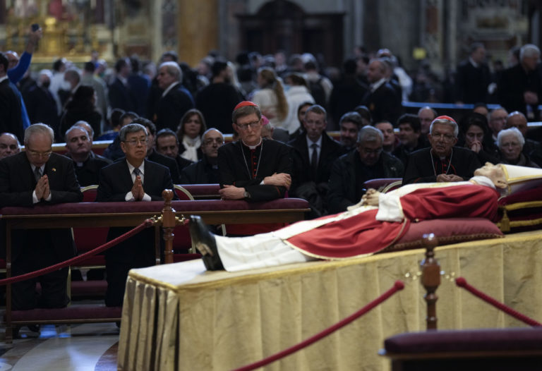 Telo pápeža Benedikta XVI. bolo vystavené v Bazilike sv. Petra vo Vatikáne. Foto: SITA/AP