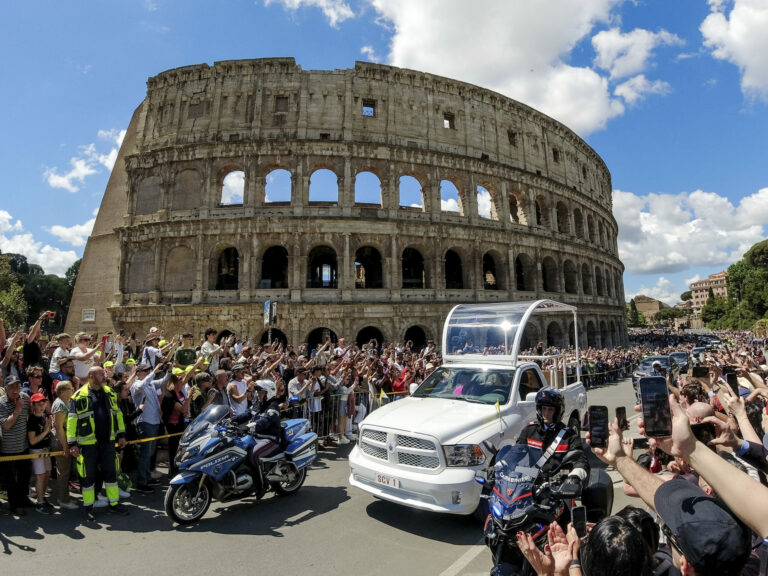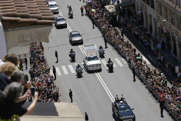 Prevoz rakvy s telom pápeža Františka do do Baziliky Santa Maria Maggiore. Rím, 26. apríl 2025. Foto: SITA/AP.