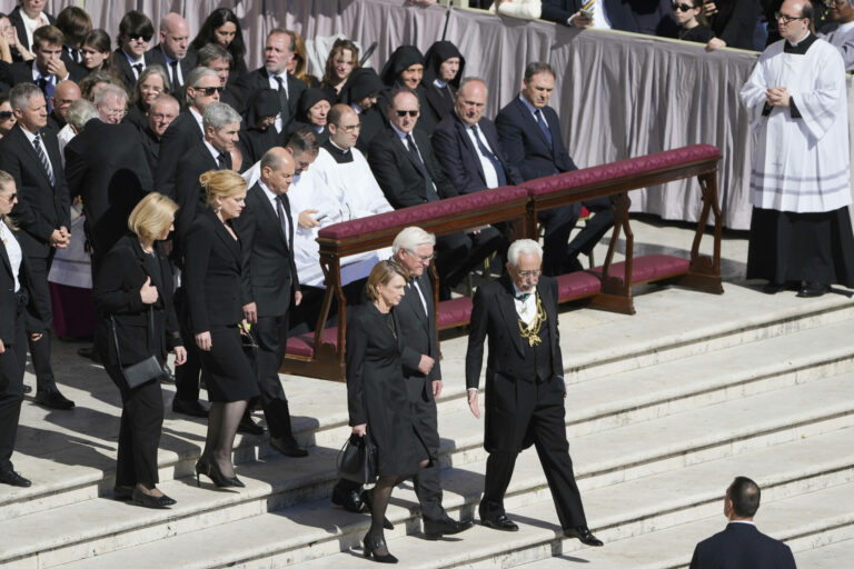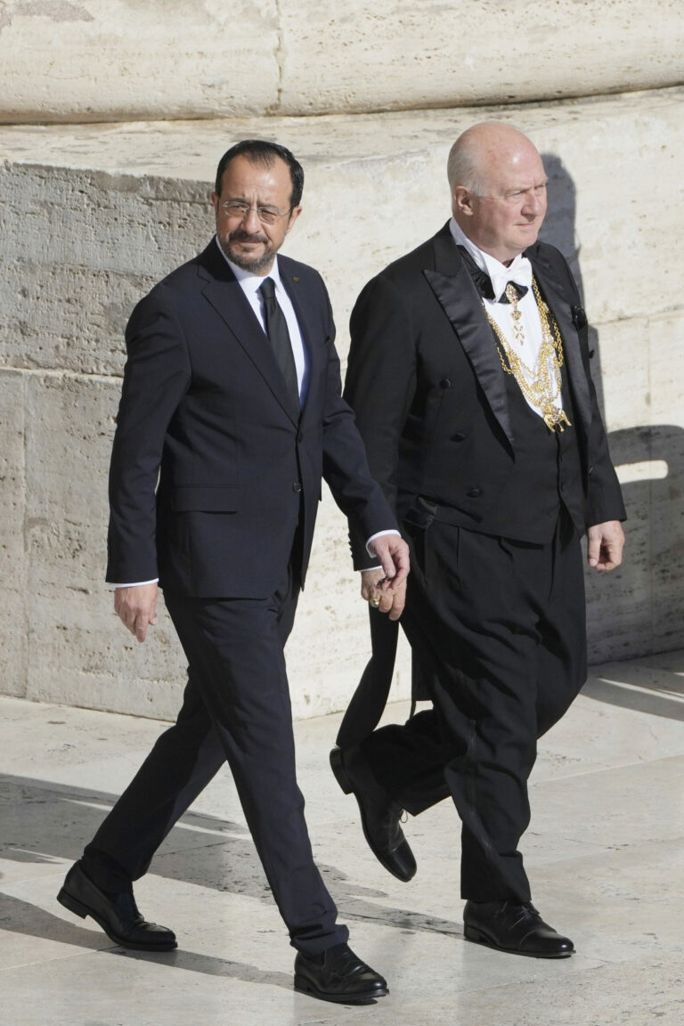 Cyperský prezident Nikos Christodoulides na poslednej rozlúčke s pápežom Františkom. Vatikán, 26. apríl 2025. Foto: SITA/AP.