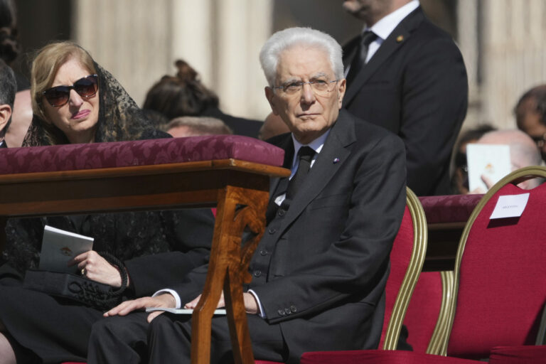Taliansky prezident Sergio Mattarella na poslednej rozlúčke s pápežom Františkom. Vatikán, 26. apríl 2025. Foto: SITA/AP.