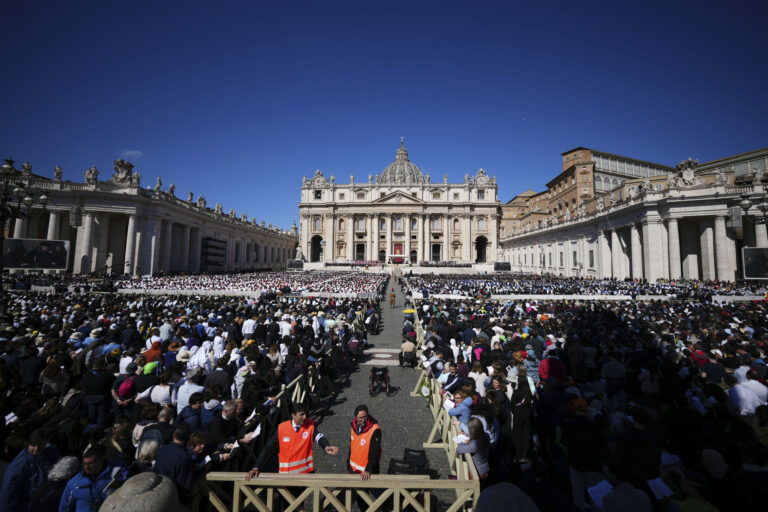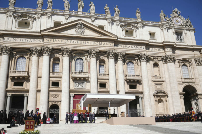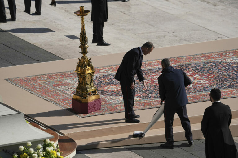 Posledné prípravy pred poslednou rozlúčkou s pápežom Františkom. Vatikán, 26. apríl 2025. Foto: SITA/AP.