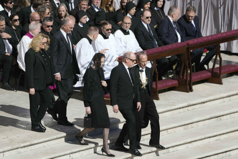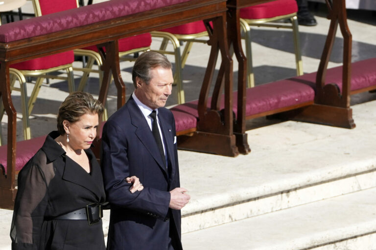Luxemburský veľkovojvoda Henri a veľkovojvodkyňa Maria Teresa na poslednej rozlúčke s pápežom Františkom. Vatikán, 26. apríl 2025. Foto: SITA/AP.