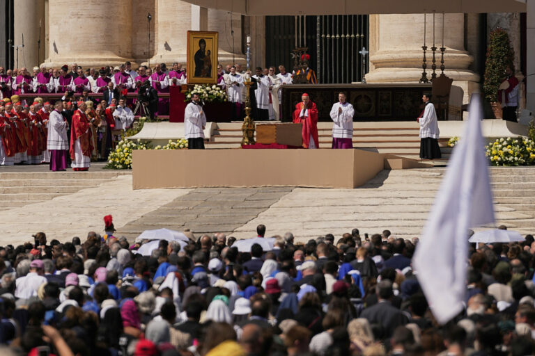 Omšu za zosnulého pápeža Františka na Námestí sv. Petra vo Vatikáne celebroval Kardinál Giovanni Battista Re. Vatikán, 26. apríl 2025. Foto: SITA/AP.