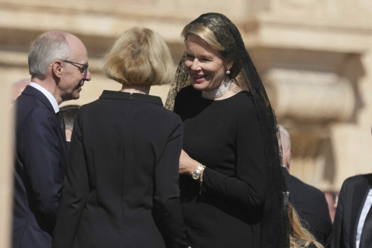Belgická kráľovná Mathilde na poslednej rozlúčke s pápežom Františkom. Vatikán, 26. apríl 2025. Foto: SITA/AP.