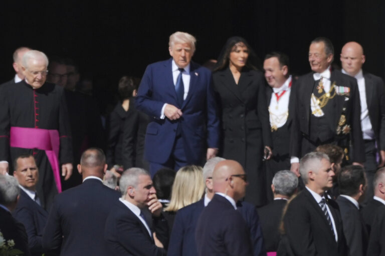 Americký prezident Donald Trump s manželkou Melaniou na poslednej rozlúčke s pápežom Františkom. Vatikán, 26. apríl 2025. Foto: SITA/AP.