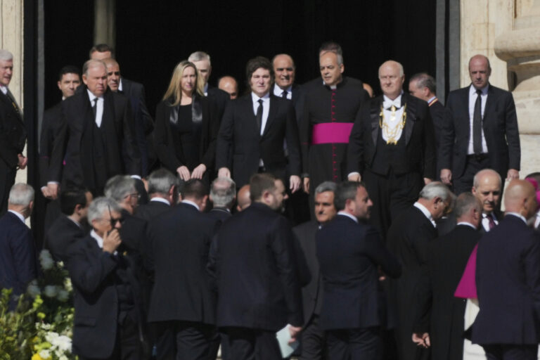 Argentínsky prezident Javier Milei na poslednej rozlúčke s pápežom Františkom. Vatikán, 26. apríl 2025. Foto: SITA/AP.