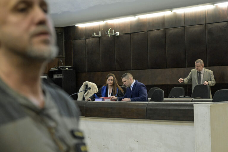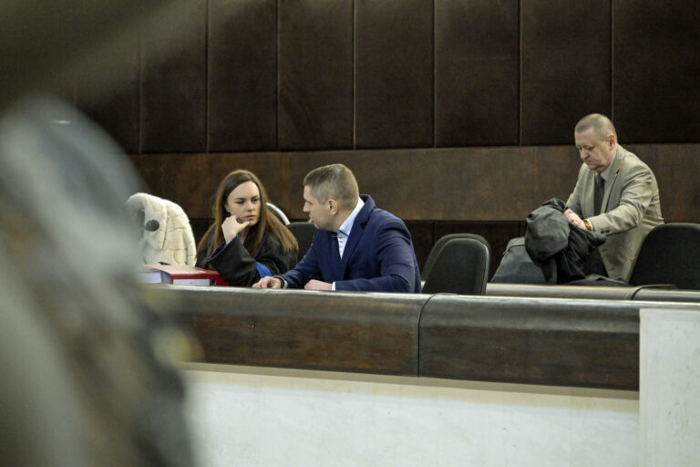 Advokát Adam P. (vpravo) obžalovaný z vraždy Daniela Tupého počas hlavného pojednávania v kauze vraždy študenta Daniela Tupého na Mestskom súde v Bratislave. Bratislava, 5. február 2025. Foto: SITA/Milan Illík