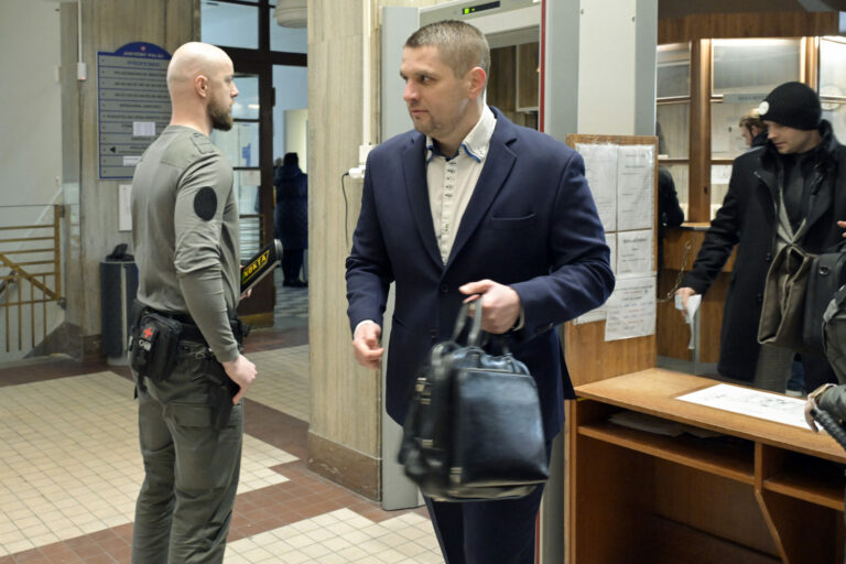 Advokát Adam P. (vľavo) obžalovaný z vraždy Daniela Tupého pred hlavným pojednávaním v kauze vraždy študenta Daniela Tupého na Mestskom súde v Bratislave. Bratislava, 5. február 2025. Foto: SITA/Milan Illík