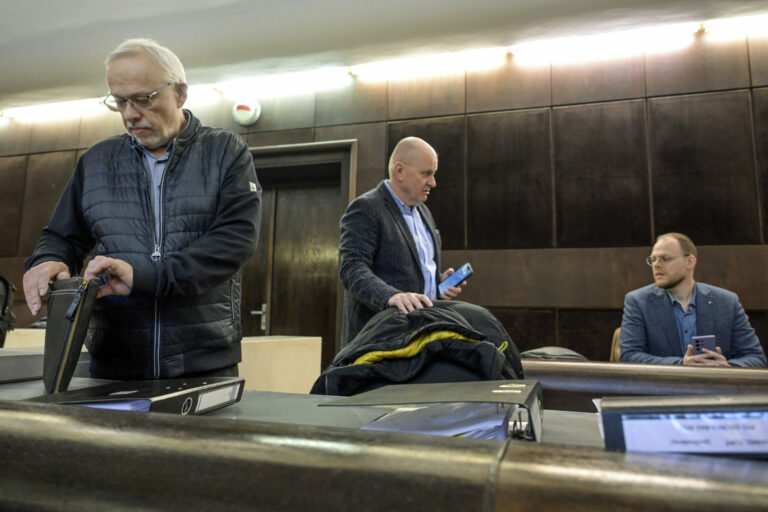 Sprava: Otec Daniela Tupého, Daniel Tupý starší a advokát Adam P. obžalovaný z vraždy Daniela Tupého pred hlavným pojednávaním v kauze vraždy študenta Daniela Tupého na Mestskom súde v Bratislave. Bratislava, 5. február 2025. Foto: SITA/Milan Illík