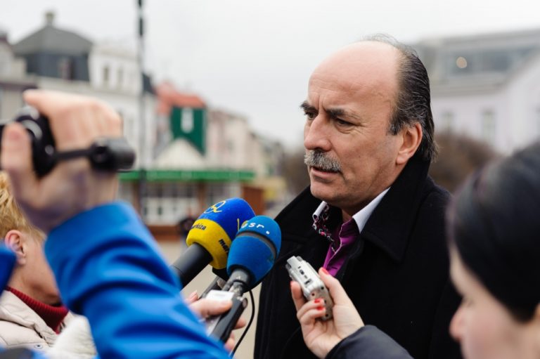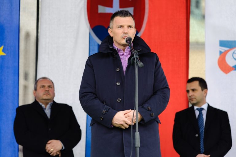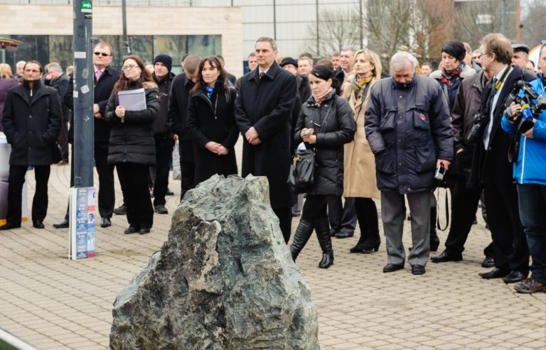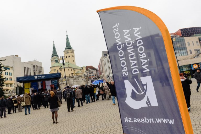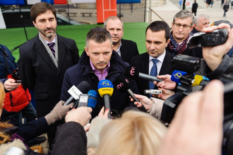 Atmosféra na Hlinkovom námestí počas poklopania základného kameňa stavby diaľničného úseku D1 Hričovské Podhradie – Lietavská Lúčka. Žilina, 20.február 2014. Foto: SITA/Milo Fabian
