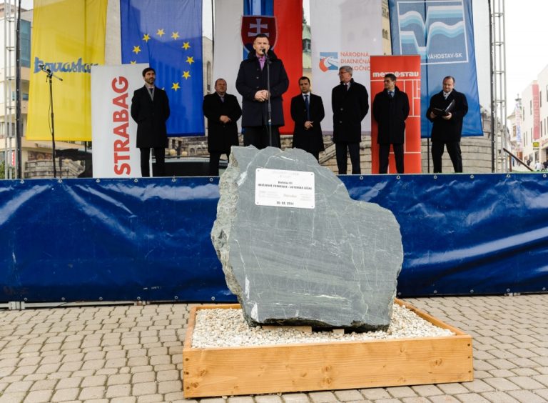 Základný kameň stavby diaľničného úseku D1 Hričovské Podhradie – Lietavská Lúčka. Žilina, 20.február 2014. Foto: SITA/Milo Fabian