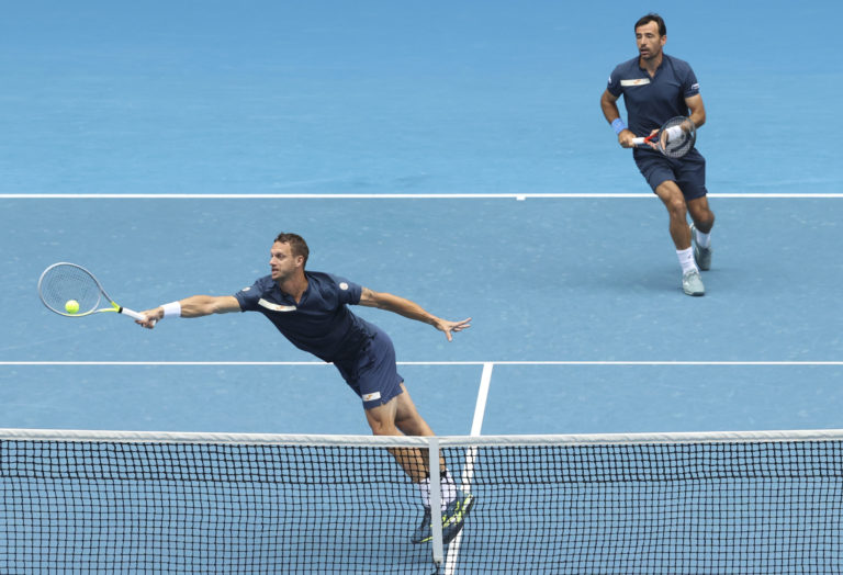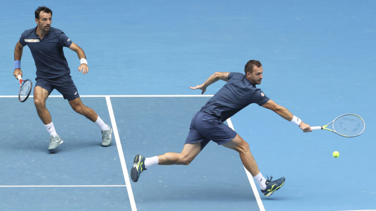 Slovenský tenista Filip Polášek získal prvý grandslamový titul v kariére, keď spolu s chorvátskym tenistom Ivanom Dodigom vyhrali finále štvorhry na Australian Open 2021. Foto: SITA/AP