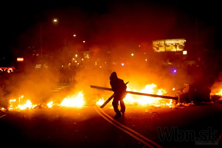 Americký policajt Darren Wilson, ktorý zastrelil černošského mladíka Michaela Browna, nebude čeliť trestnému stíhaniu. Po zverejnení verdiktu zachvátili Ferguson nové násilné nepokoje, ktoré sa rozšírili aj do iných častí USA vrátane mesta New York. Foto: SITA/AP