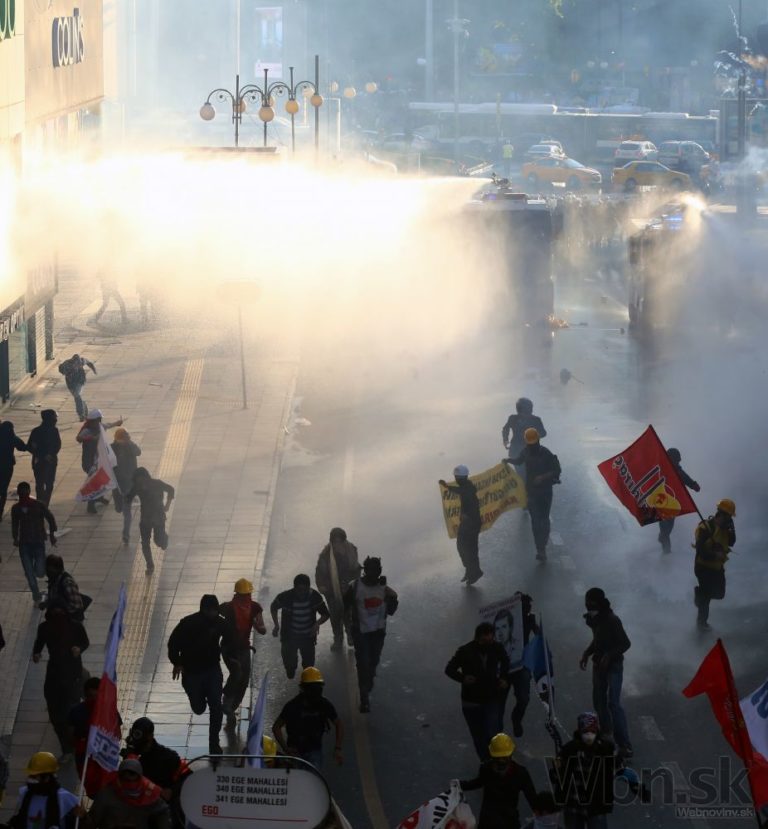 Turecká polícia použila proti demonštrantom vodné delá na prvé výročie začiatku nepokojov. Foto: SITA/AP