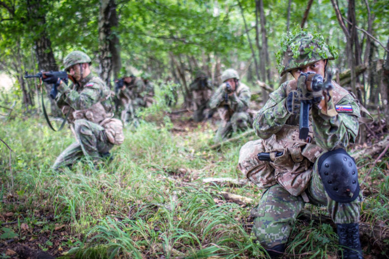 Kadeti Akadémie ozbrojených síl generála Milana Rastislava Štefánika v Liptovskom Mikuláši a Univerzity obrany v Brne absolvovali v uplynulých dňoch v priestoroch Centra výcviku Lešť poľný výcvik. Vedomosti z oblasti taktickej, streleckej, ženijnej, ako aj topografickej prípravy si v praxi precvičilo 152 študentov. Praktické cvičenia sú súčasťou vojenského programu kadetov, ktorý prebieha súčasne s vybraným študijným programom a zároveň je podmienkou pre úspešné absolvovanie vysokoškolského štúdia. Bratilsava, 11. august 2018. Foto: SITA/MOSR