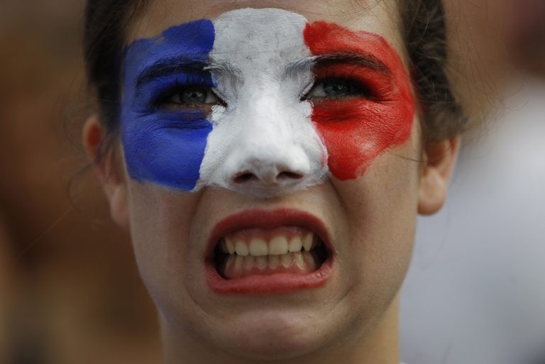 Fanúšik Francúzska počas pondelňajšieho osemfinálového zápasu na svetovom šampionáte v Brazílii. Foto: SITA/AP