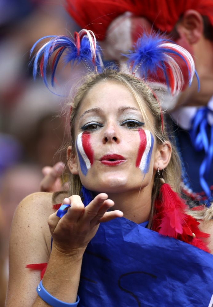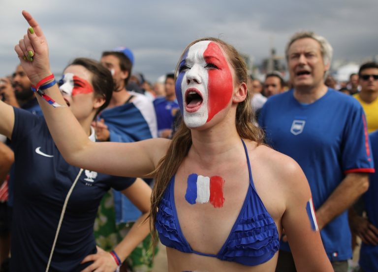Fanúšikovia Francúzska počas pondelňajšieho osemfinálového zápasu na svetovom šampionáte v Brazílii. Foto: SITA/AP