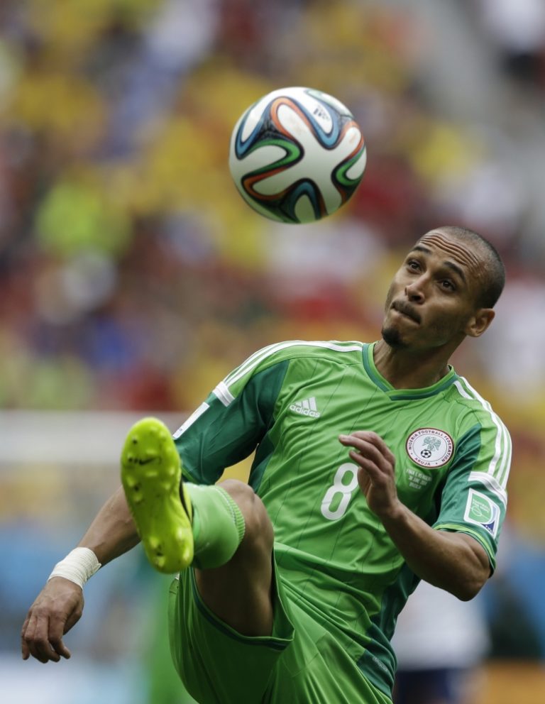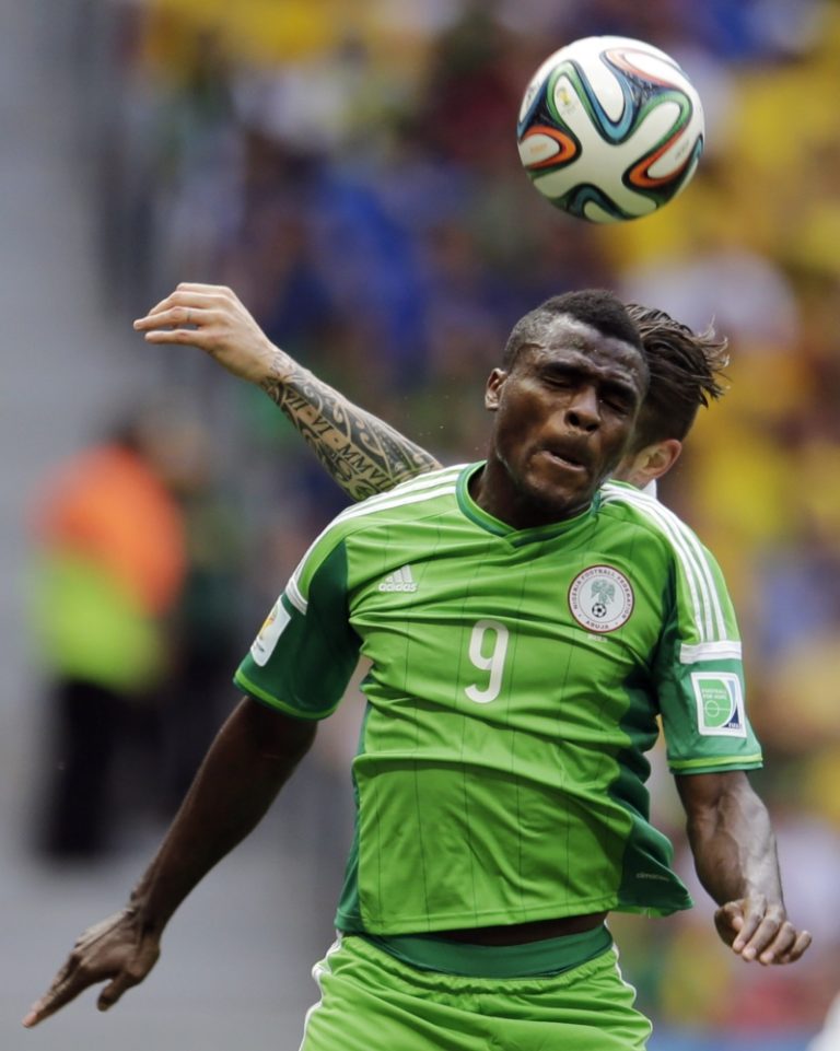 Nigérijčan Peter Odemwingie si spracováva loptu počas pondelňajšieho osemfinálového zápasu na svetovom šampionáte v Brazílii. Foto: SITA/AP
