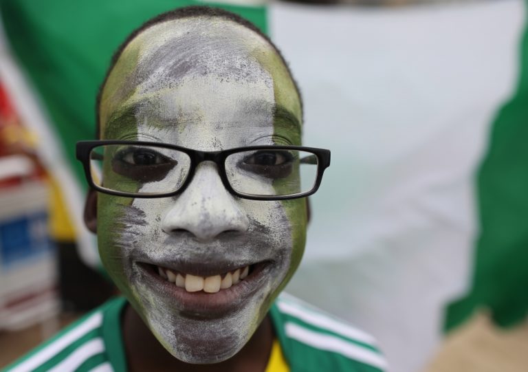 Fanúšik Nigérie počas pondelňajšieho osemfinálového zápasu na svetovom šampionáte v Brazílii. Foto: SITA/AP