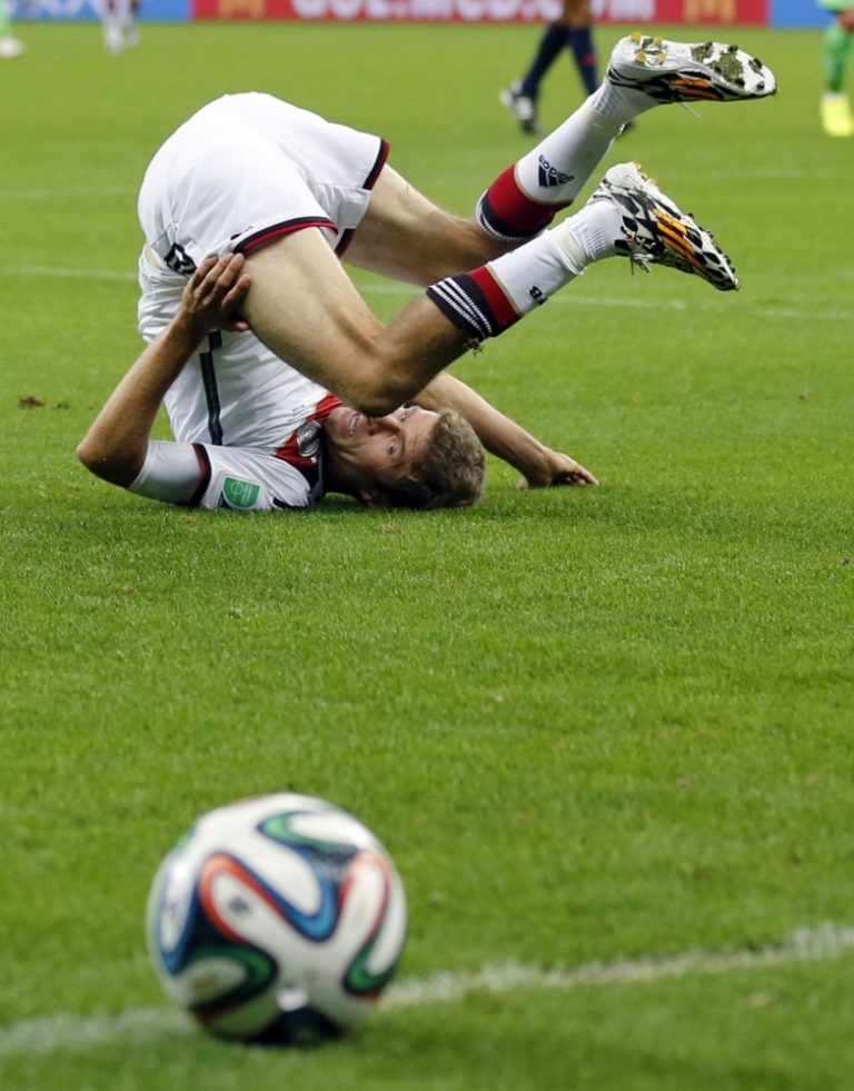 Nemecký futbalista Thomas Müller počas pondelňajšieho osemfinálového zápasu na svetovom šampionáte v Brazílii. Foto: SITA/AP