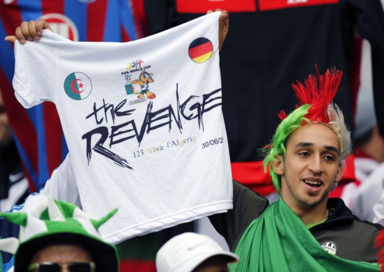 Fanúšikovia Alžírska počas pondelňajšieho osemfinálového zápasu na svetovom šampionáte v Brazílii. Foto: SITA/AP