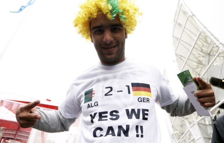 Fanúšik Alžírska počas pondelňajšieho osemfinálového zápasu na svetovom šampionáte v Brazílii. Foto: SITA/AP