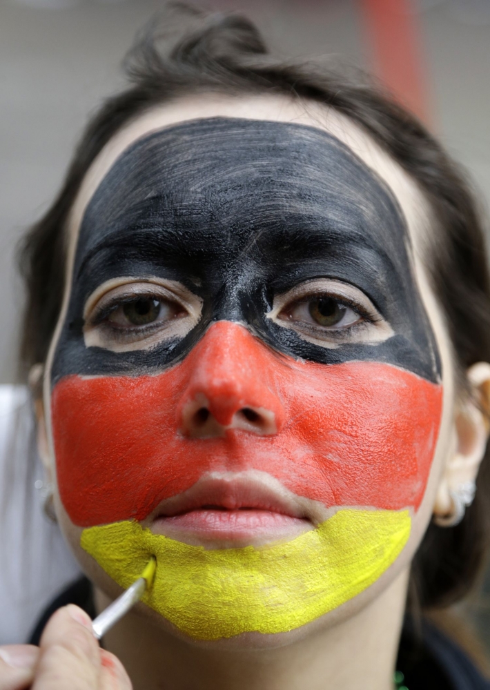 Fanúšička Nemecka počas pondelňajšieho osemfinálového zápasu na svetovom šampionáte v Brazílii. Foto: SITA/AP