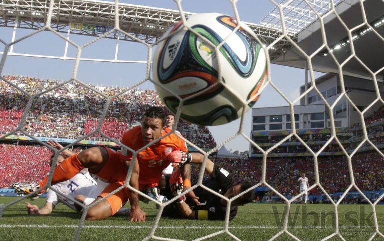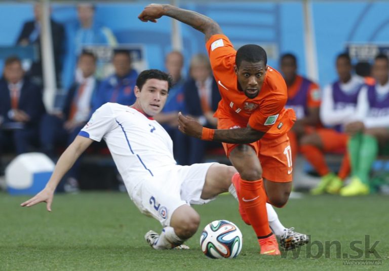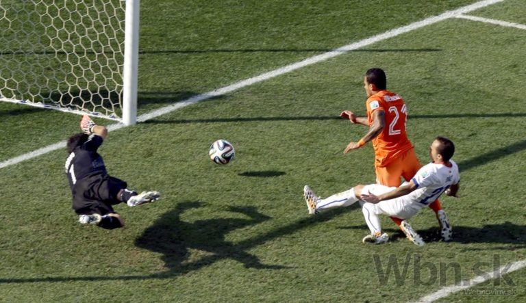 Holandský futbalista Memphis Depay prekonáva brankára Čile počas pondelňajšieho zápasu proti na svetovom šampionáte v Brazílii. Foto: SITA/AP