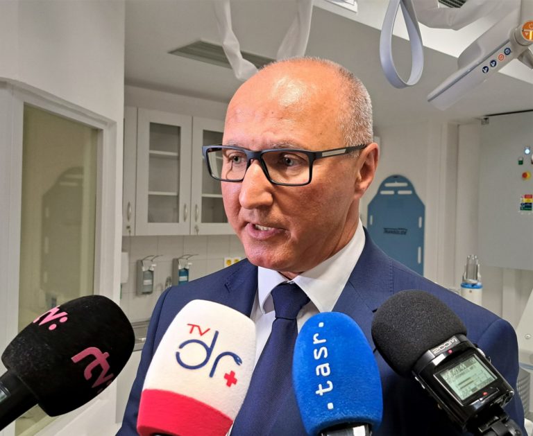 Riaditeľ popradskej nemocnice Jozef Tekáč pri otvorení očnej kliniky a rádiodiagnostického pracoviska v nemocnici. Poprad, 4. september 2023. Foto: SITA/Mária Frisová.