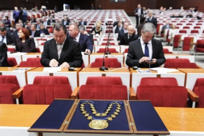 Pohľad na Ústavu Slovenskej republiky počas ustanovujúcej schôdze NR SR VI. volebného obdobia. Bratislava, 4. apríl 2012. Foto: SITA/Jozef Jakubčo