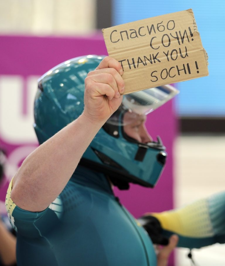 Člen austrálskeho štvorbobu pred nedeľňajšou treťou jazdou v areáli Sanki. Foto: SITA/AP