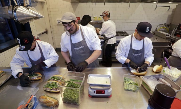 Zamestnanci pripravujú čerstvé sendviče. Foto: SITA/AP