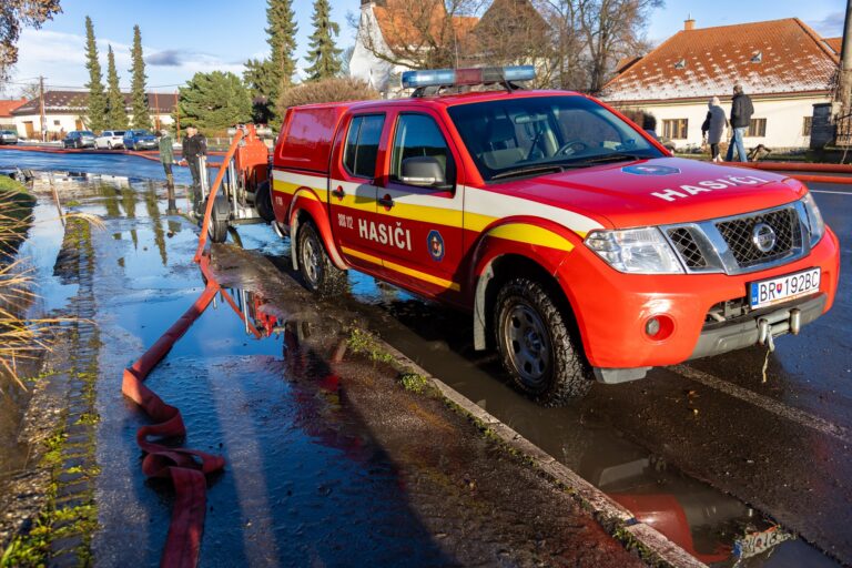 Zásah príslušníkov Hasičského a záchranného zboru pri povodniach v Sliači. Foto: www.facebook.com