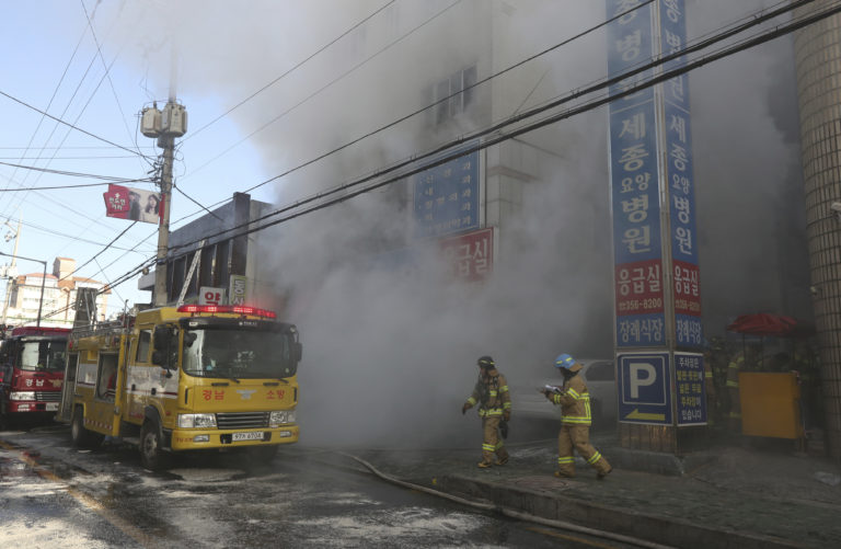 Požiar v nemocnici v juhokórejskom meste Mirjang si vyžiadal. Oheň vypukol na pohotovosti na prvom poschodí a hasičom sa ho podarilo uhasiť po takmer troch hodinách. Väčšinu úmrtí spôsobila inhalácia dymu. Mirjang, 26. január 2018.