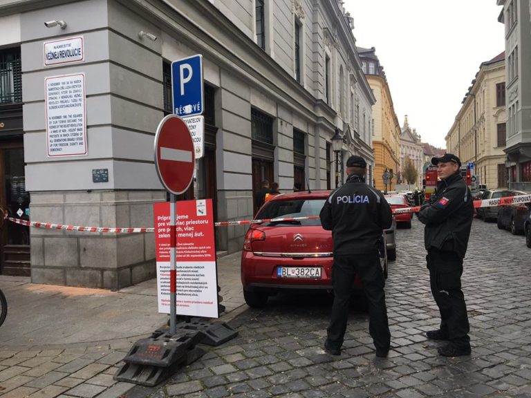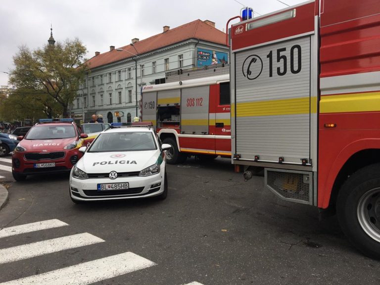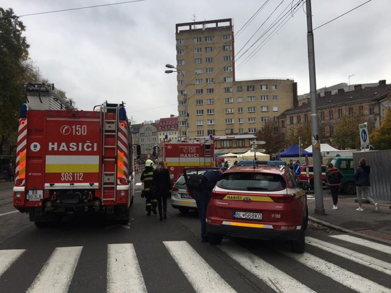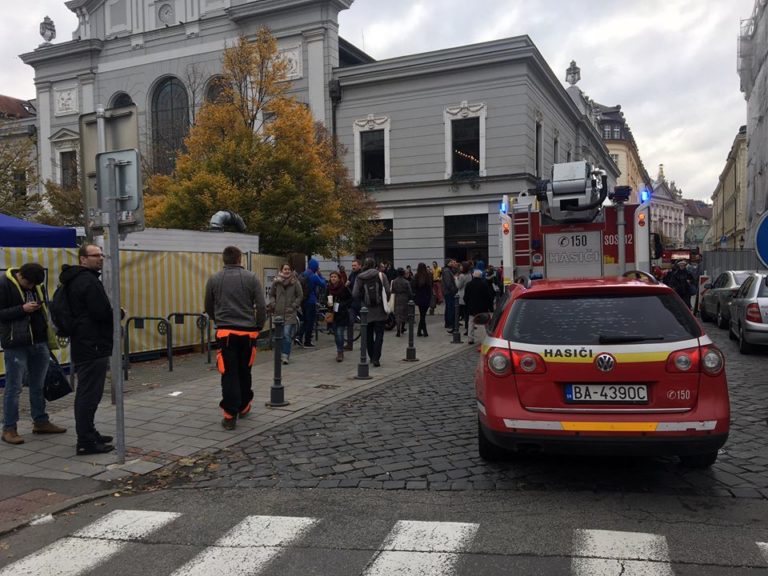 Zásah polície a hasičov v bratislavskej Starej Tržnici, kde v suteréne vypukol požiar. Bratislava, 15. november 2019. Foto: www.facebook.com.