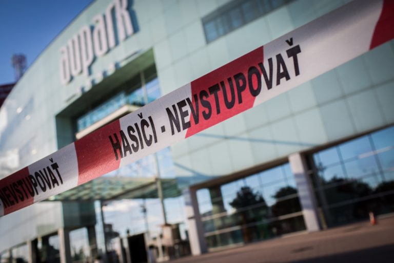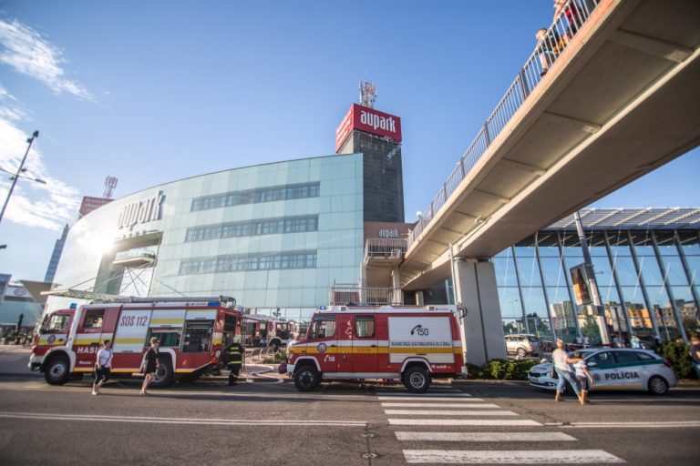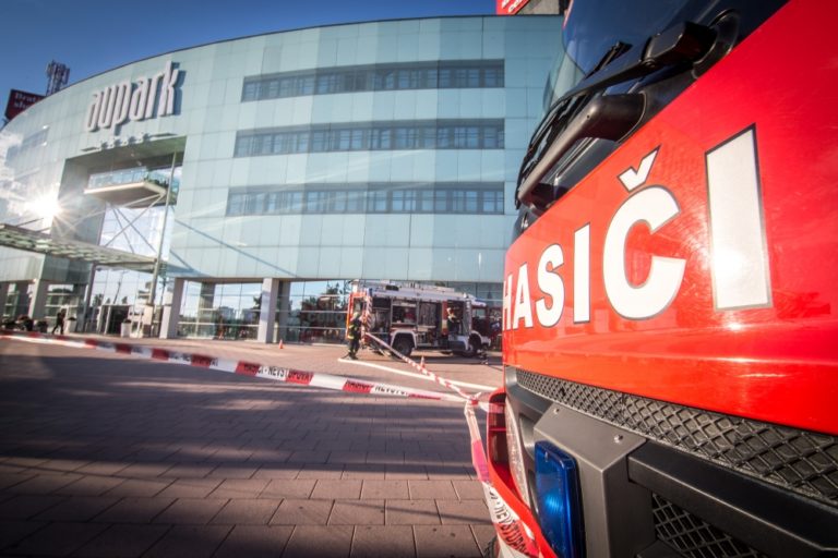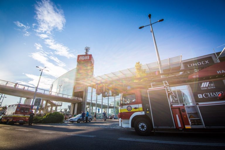 Vo štvrtok popoludní vypukol v bratislavskom nákupnom centre Aupark na Einsteinovej ulici požiar, pri ktorom zasahovalo viac ako dvadsať požiarnikov. Bratislava, 4. august 2016. Foto: SITA/Marko Erd