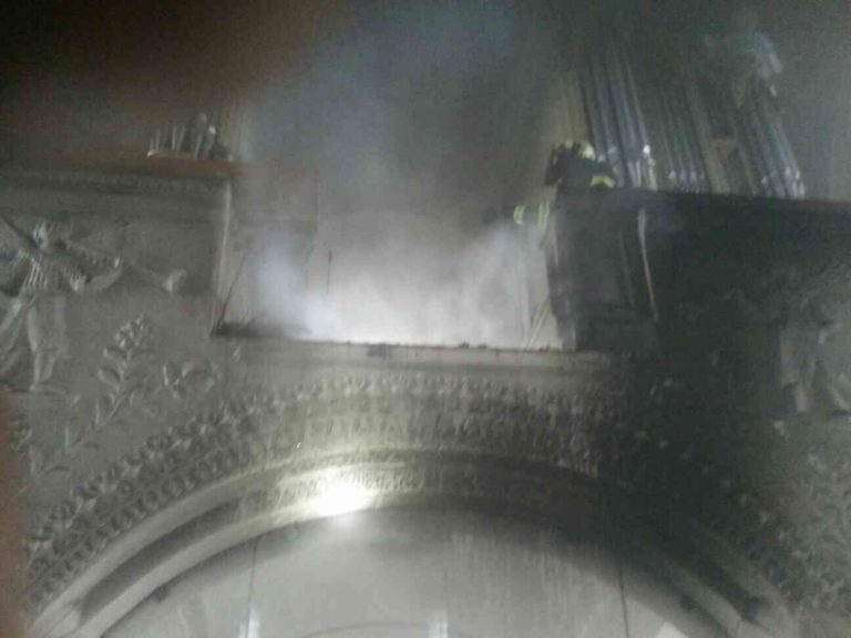 Hasiči zasahovali pri požiari v evanjelickom kostole v obci Hybe v okrese Liptovský Mikuláš. Požiar vznikol v blízkosti organu a rozšíril sa na hudobnú aparatúru. Na mieste udalosti zasahovali desiati hasiči z Liptovského Mikuláša a Liptovského Hrádku so šiestimi kusmi hasičskej techniky. Škodu, ktorú požiar spôsobil, predbežne vyčíslili na 100-tisíc eur. Bratislava, 28. december 2016. Foto: SITA/HaZZ